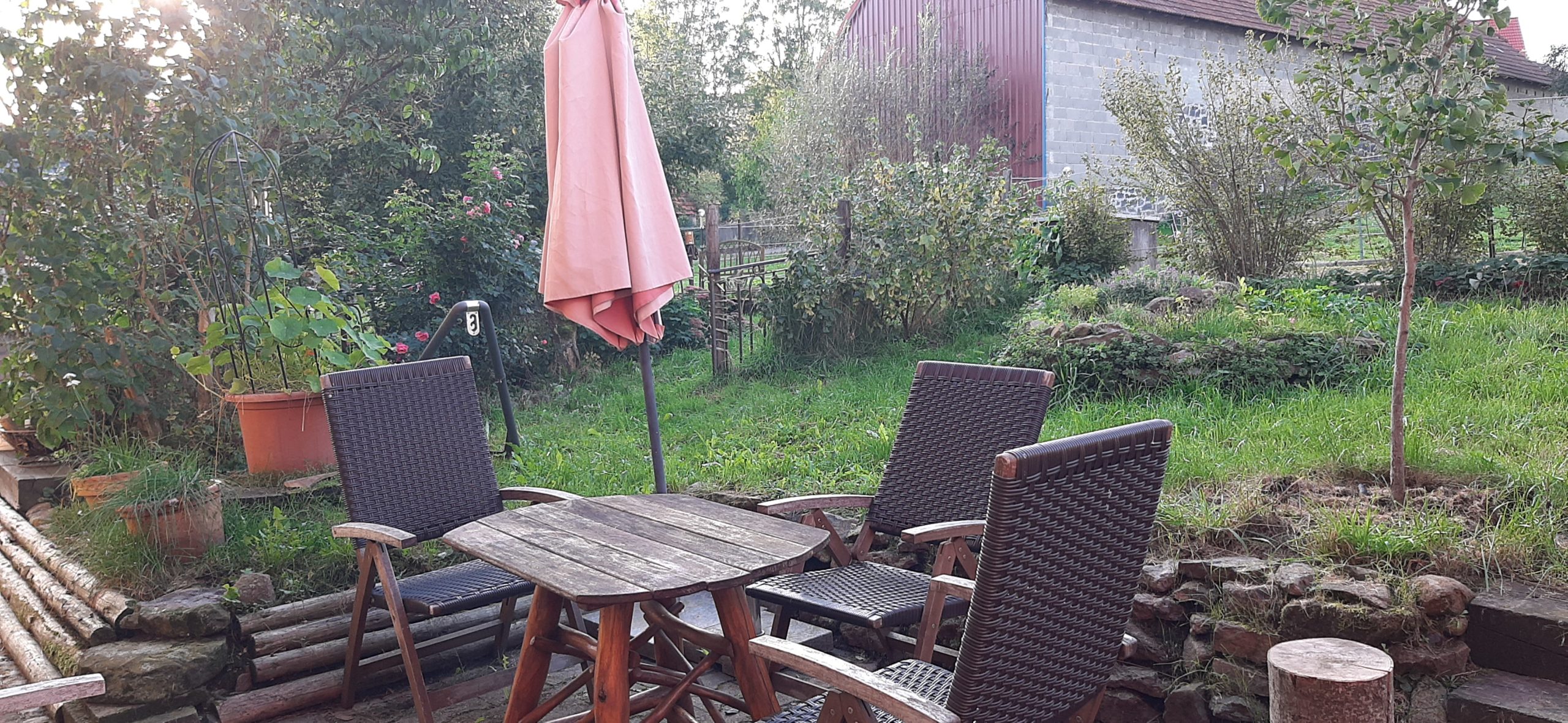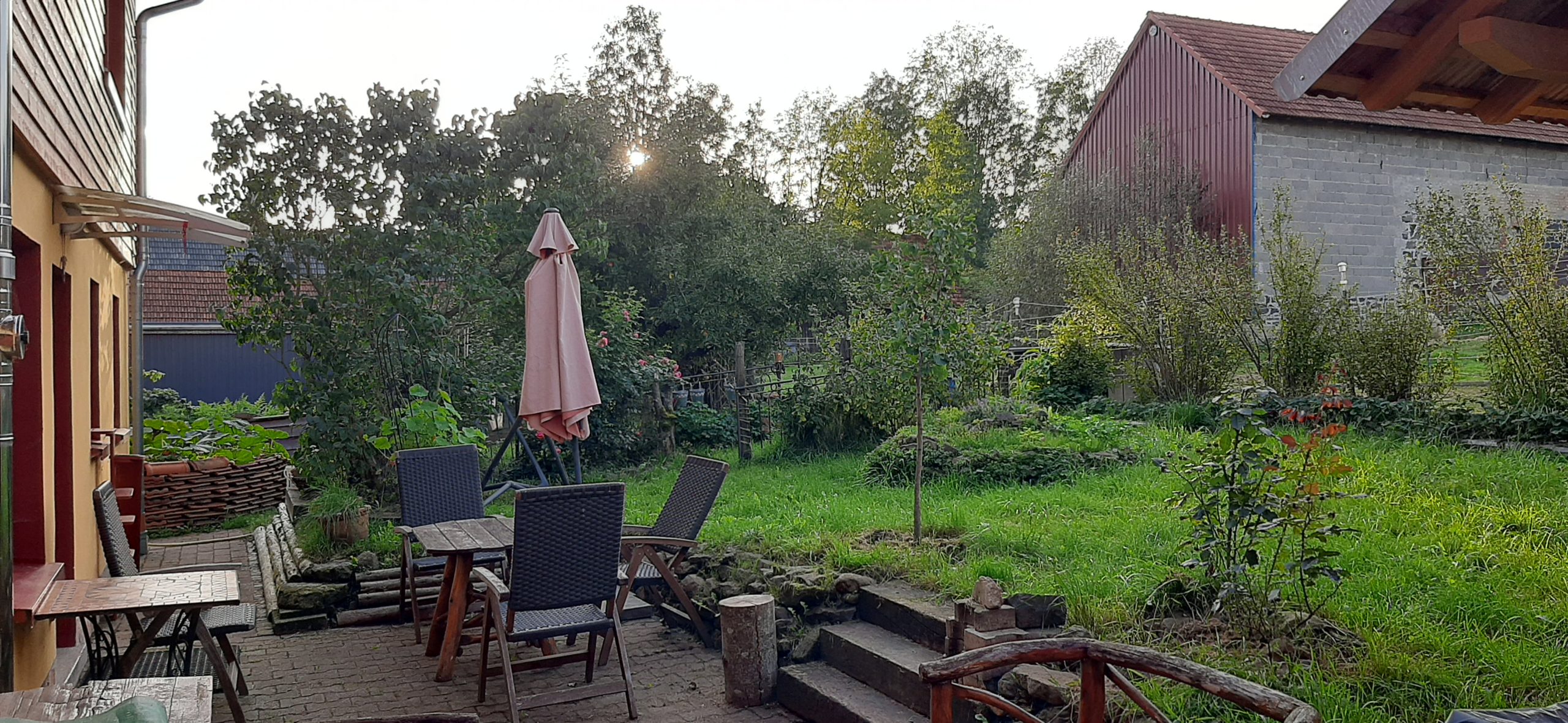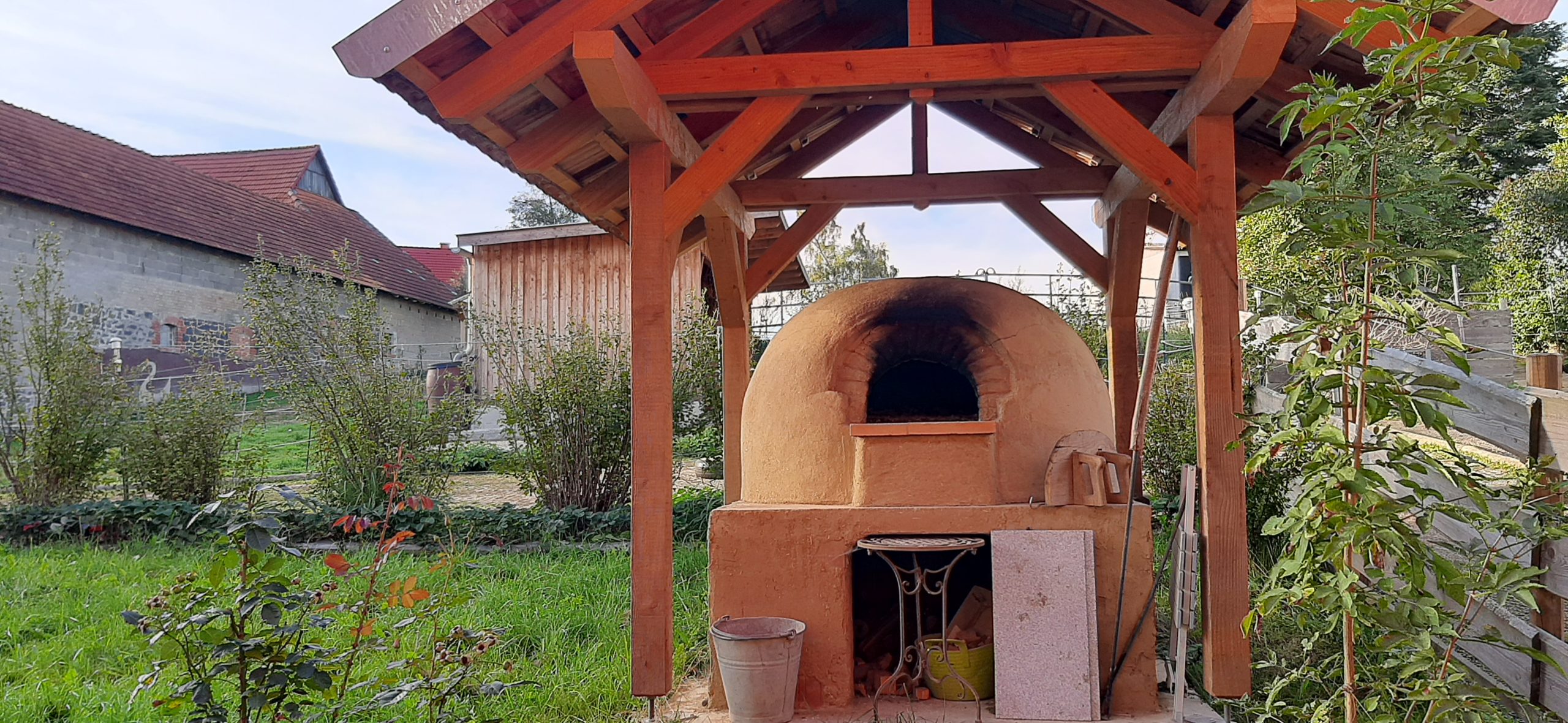 Ein großer Permakultur Selbstversorgergarten und Lehmbackofen zur autarken Versorgung rundet das Ganze ab. Mehrere Hektar angrenzende Wiesen können dazu erworben werden.