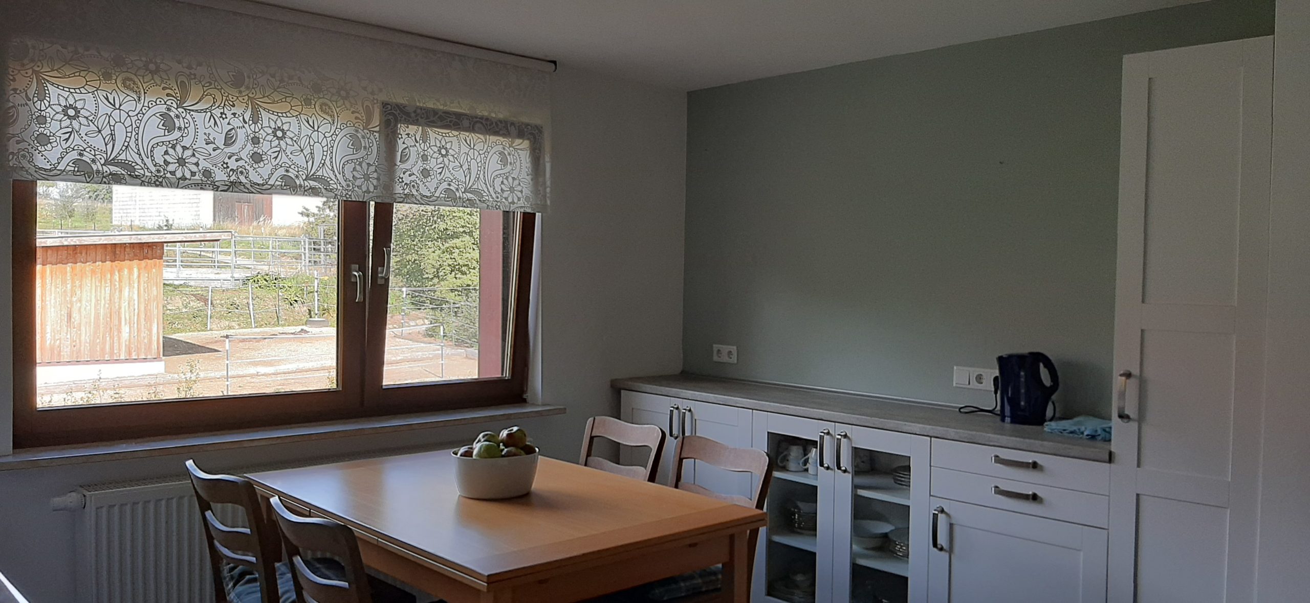 Eine großzügige Terrasse im EG ergänzt das Angebot und schafft zusätzlichen Raum für Aktivitäten mit der Familie oder gesellige Abende. Der Hof ist ausgelegt auf artgerechte Pferdehaltung für 4 Pferde: befestigter Paddock mit großem Pferdestall plus Scandwood Unterstand, zusätzlich Paddocktrail mit div. Fressplätzen und Roundpen.