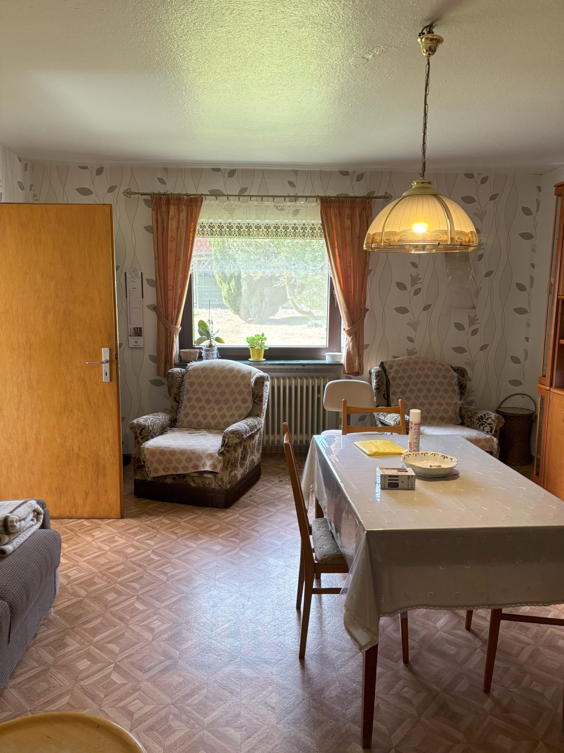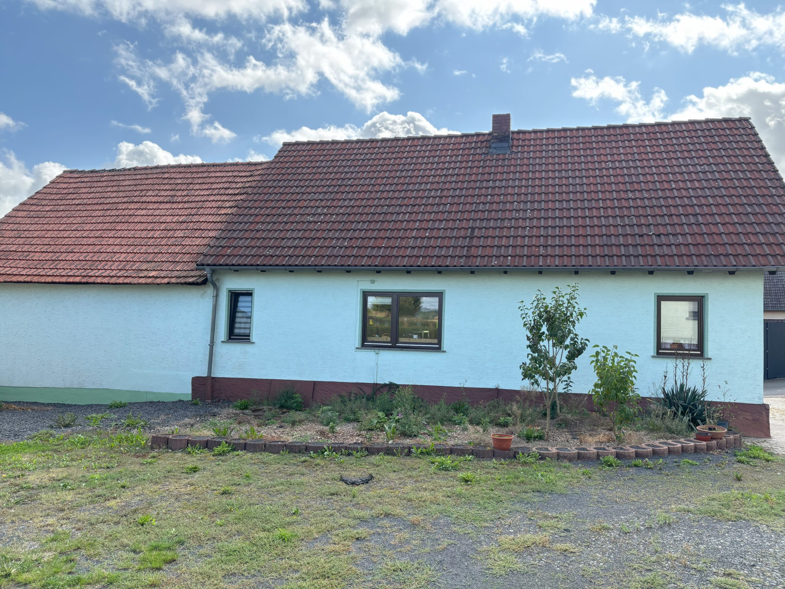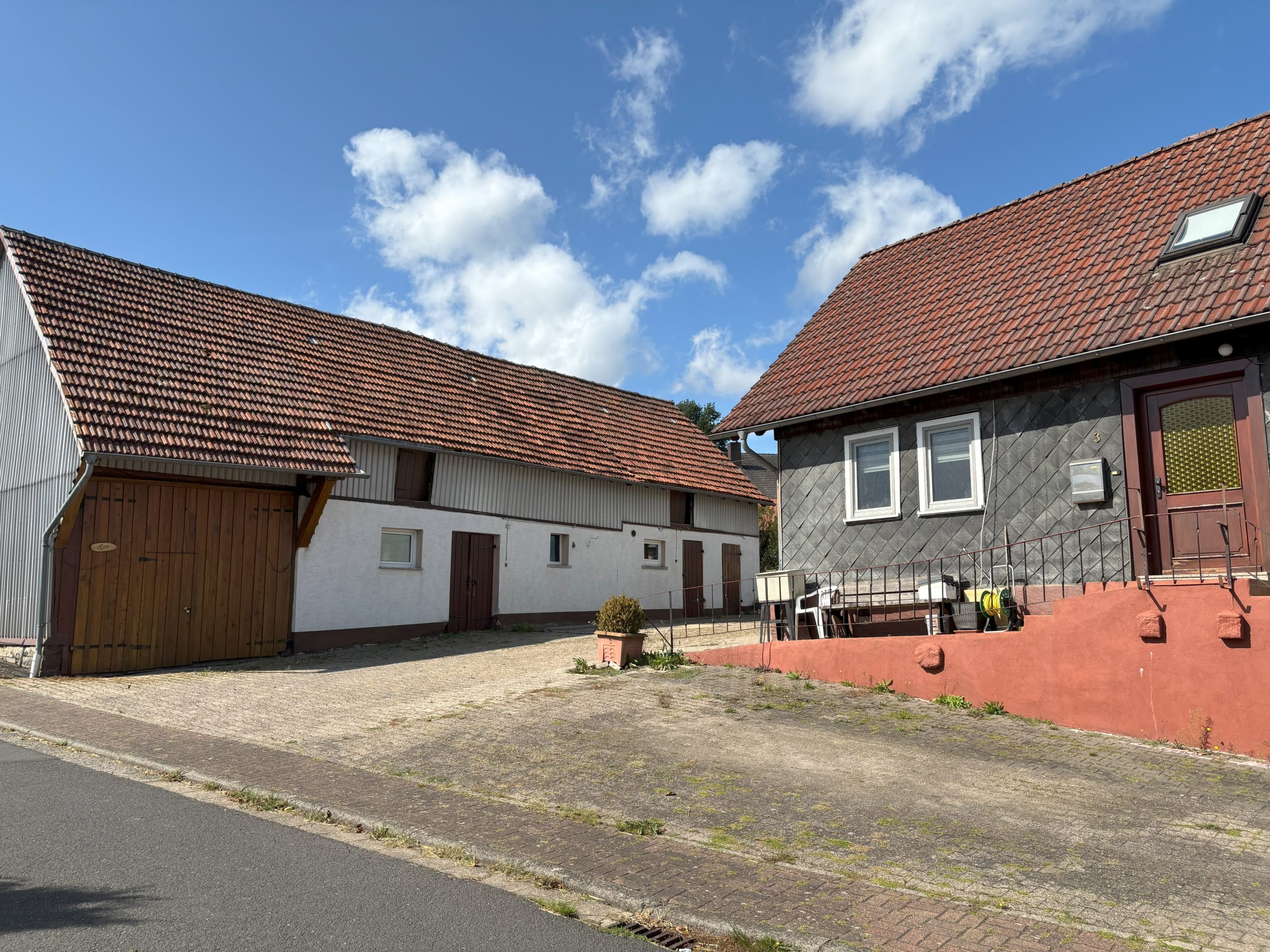 Vorne auf dem Grundstück befindet sich noch das „alte“ Haus mit angrenzender Scheune. Dieses Haus umfasst ca. 80 m² Wohnfläche und ist aktuell vermietet.